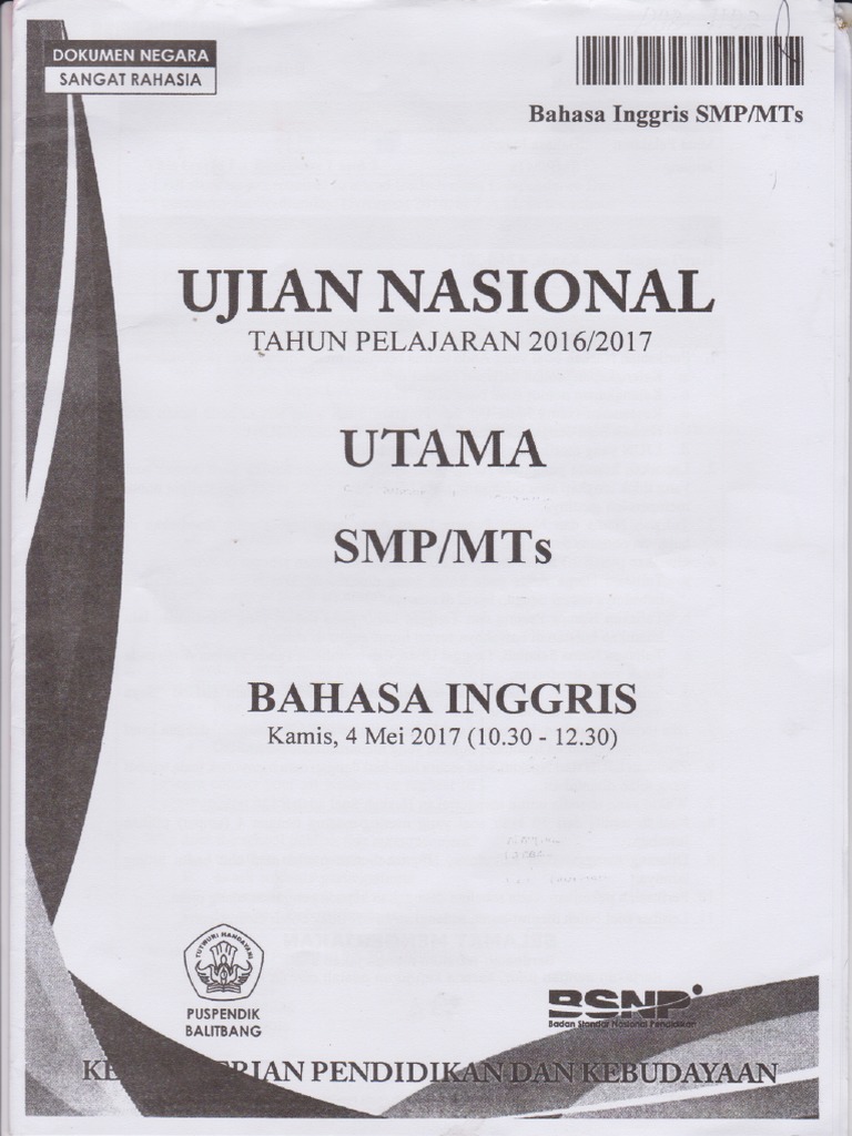 Soal-soal tersebut merupakan naskah asli scan bukan hasil ketik ulang jadi bisa dipastikan 100 sama dengan soal yang diujikan. Isikan identitas Anda pada Lembar Jawaban Ujian Sekolah Berstandar Nasional LJUSBN Bahasa Inggris yang tersedia dengan menggunakan pensil 2B. Website ini hadir dalam rangka ikut berpartisipasi dalam.