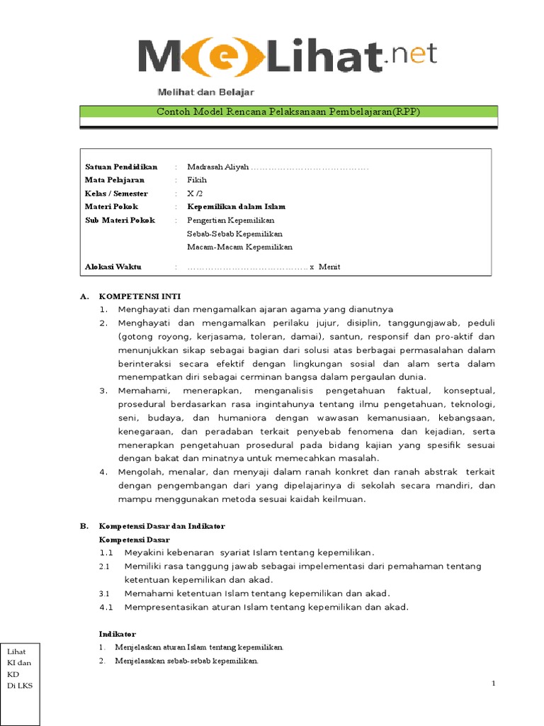 Rpp Bab 1 Kp 1 Kepemilikan Dalam Islam