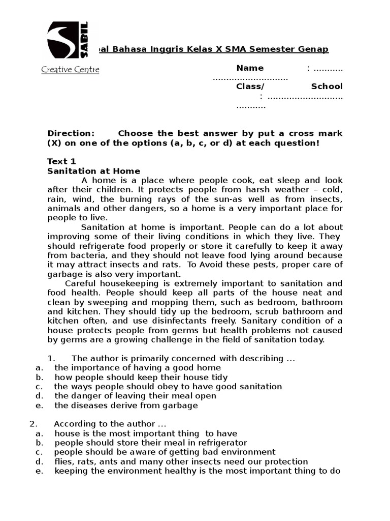 Soal UTS Bahasa Inggris SMASMK Tahun Ajaran 20172018 Kelas 10 Semester 1 gudangalamaime - selamat datang di blog kami yang sederhana ini berjumpa kembali pada kesempatan ini saya dapat berbagi lagi tentang Soal UTS Bahasa Inggris SMASMK Tahun Ajaran 20202021 Kelas 10. Sep 29 2020 Soal PTSUTS Bahasa Inggris Kelas 10 Semester 1 SMAMASMK TP 20202021 dibuat dari prediksi soal-soal latihan PTSUTS Kurikulum 2013 dan juga berdasarkan kisi-kisi soal Kurikulum 2013. Sep 29 2020 POS-KUPANGCOM - Kesempatan Belajar Dari rumah BDR dapat diisi dengan memperbanyak latihan mengerjakan soal-soal dan pembahasannya.