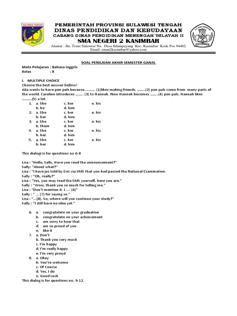 Soal Uas Gasal Bahasa Inggris Kelas X