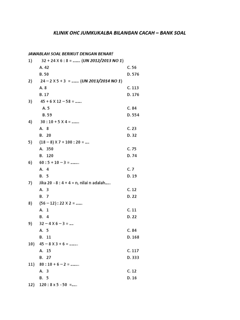 Bank Soal Matematika Sd Ohc Jumkukalba Bc