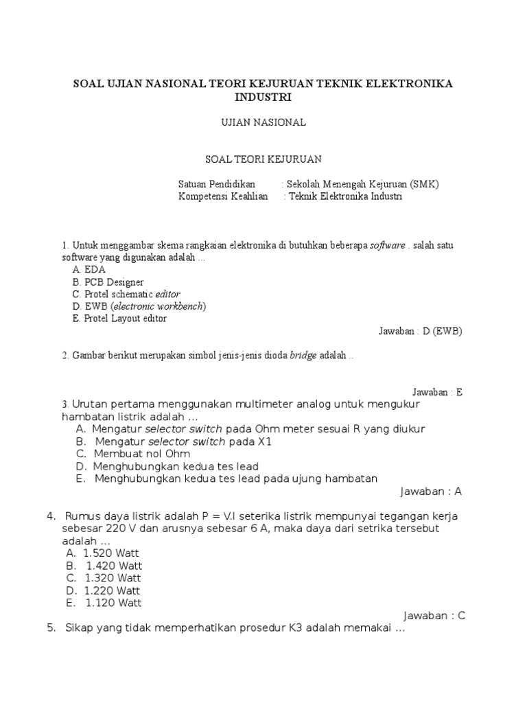 Soal Ujian Nasional Teori Kejuruan Teknik Elektronika Industri