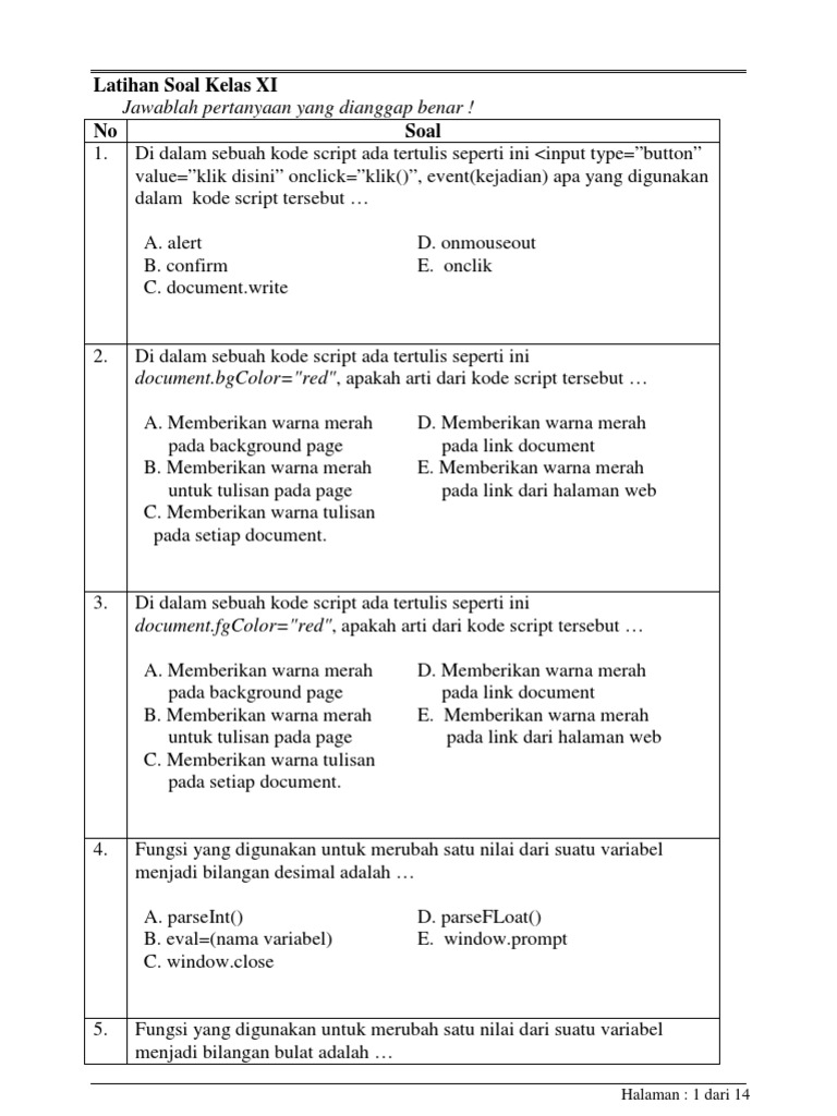 Soal Ulangan Umum Komputer Javascript Sem 2